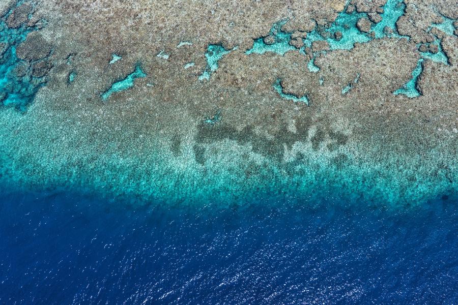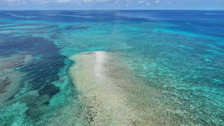 An aerial drone photo taken on Oct. 2, 2025 shows a view of China's Huangyan Dao national nature reserve in the South China Sea. (Xinhua)