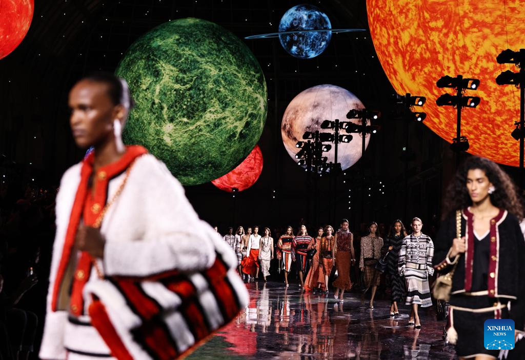 Models present creations by designer Matthieu Blazy as part of his Spring/Summer 2026 Women's ready-to-wear collection show for the French fashion house Chanel during the Paris Fashion Week, in Paris, France, on Oct. 6, 2025. (Xinhua/Gao Jing)