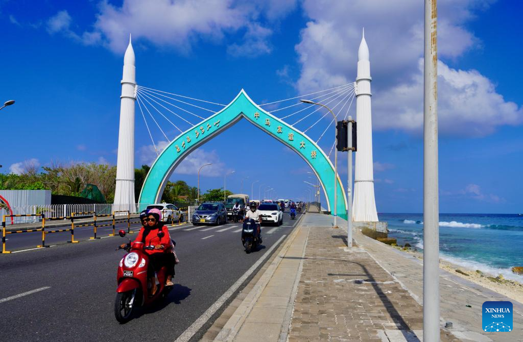 This photo taken on Oct. 1, 2025 shows the China-Maldives Friendship Bridge in Male, Maldives. (Xinhua/Wu Yue)