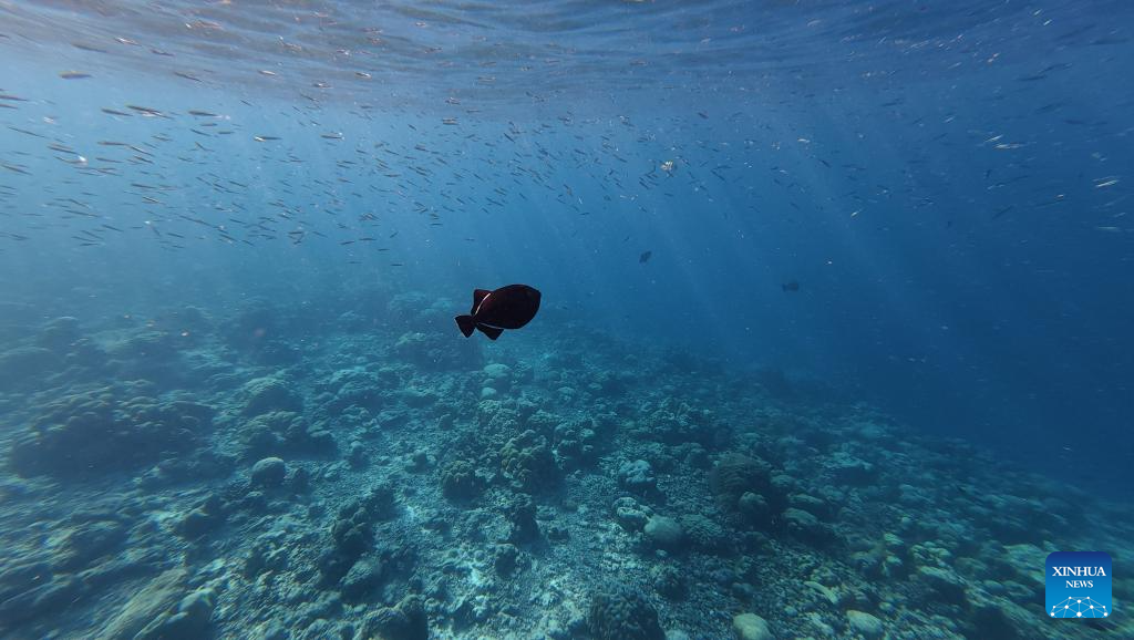 This photo taken on Oct. 5, 2025 shows tropical fish under the sea in Noonu Atoll, Maldives. (Xinhua/Wu Yue)