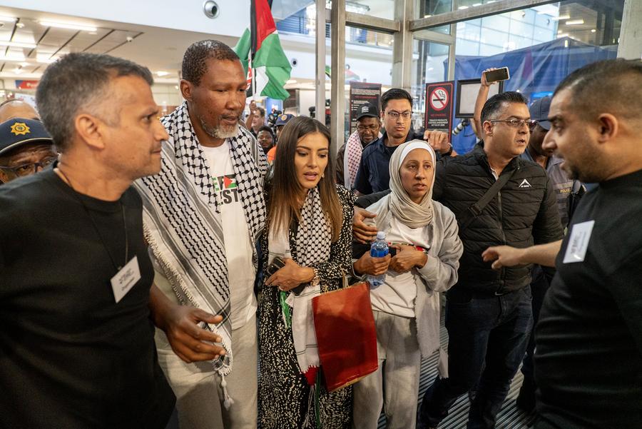 JOHANNESBURG, Oct. 9 (Xinhua) -- Six South African activists from the Global Sumud Flotilla, detained by Israeli authorities while attempting to deliver humanitarian aid to Gaza, returned home on Wednesday in Johannesburg.