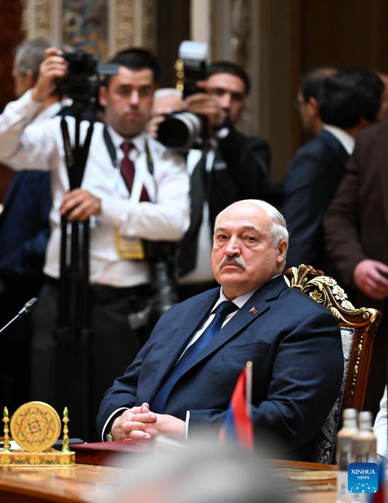 Belarusian President Alexander Lukashenko attends a meeting of the Council of Heads of State of the Commonwealth of Independent States (CIS) in Dushanbe, Tajikistan, on Oct. 10, 2025. A meeting of the Council of Heads of State of the CIS was held here Friday to review security and military cooperation, said the press service of the CIS Executive Committee. (Xinhua/Li Renzi)