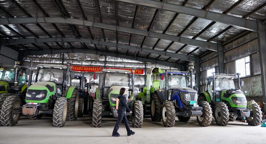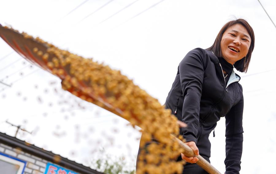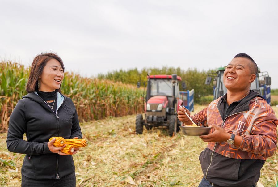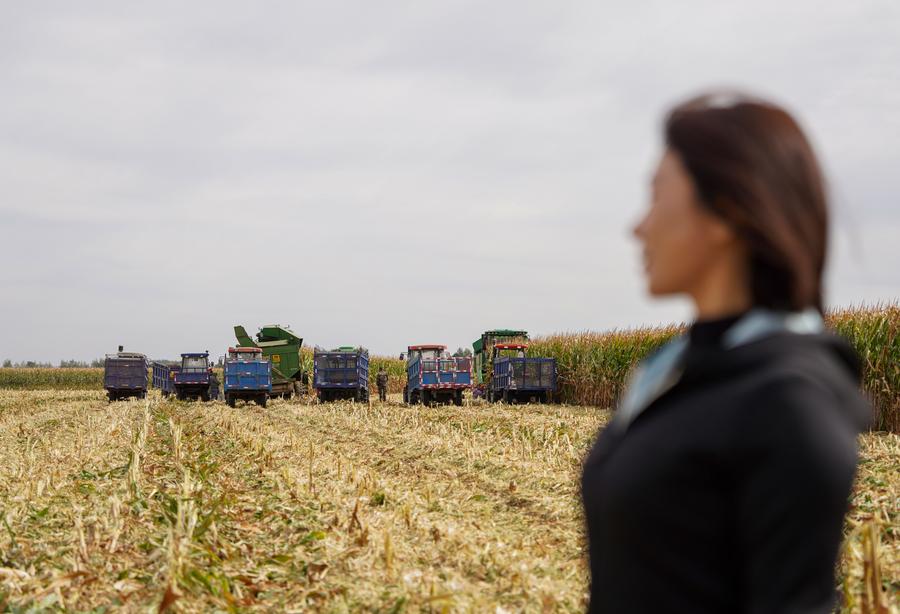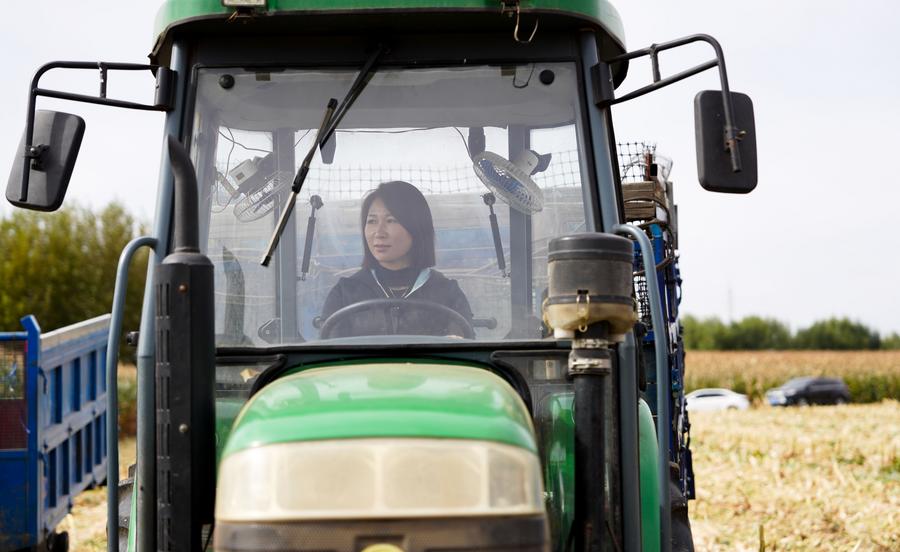 SIPING, Oct. 10 (Xinhua) -- Han Fengxiang, 43, returned to her hometown in Jilin's Lishu County to run a cooperative in 2010. Instead of relying on traditional farming methods, Han carried out mechanized farming leveraging large-scale agricultural machinery to enhance the grain output. With years of operation, the cooperative currently boasts 76 sets of large agricultural machinery and manages 1,000 hectares of land with mechanized cultivation.