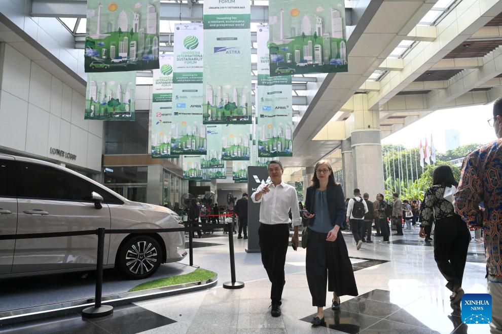 People attend the Indonesia International Sustainability Forum in Jakarta, Indonesia, Oct. 10, 2025. (Photo by Zulkarnain/Xinhua)