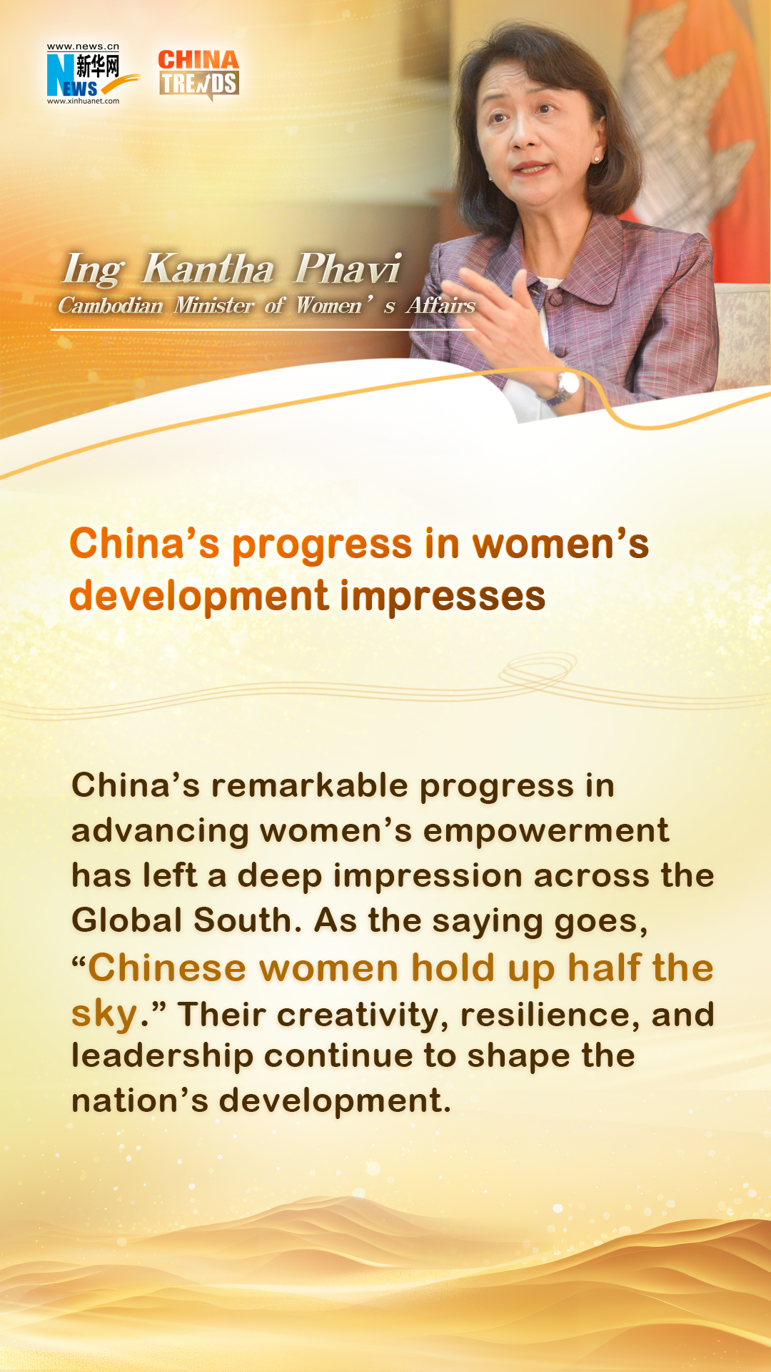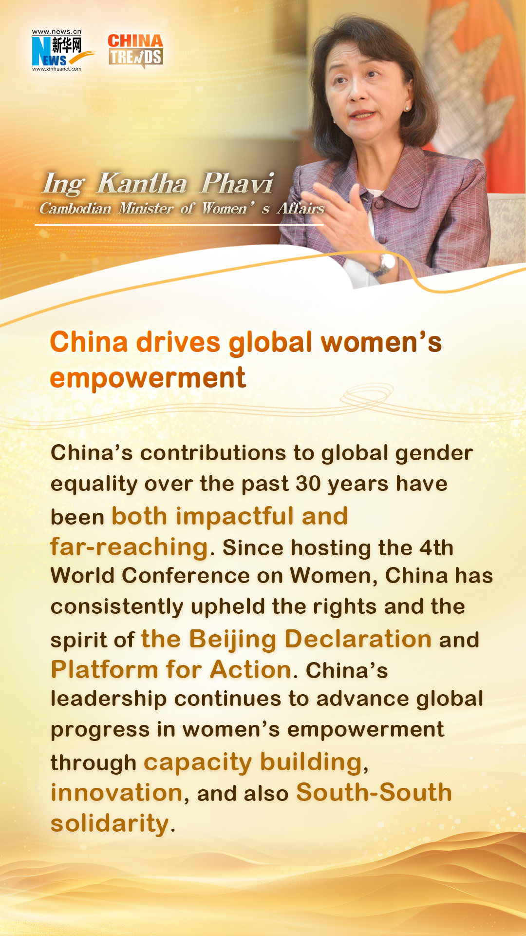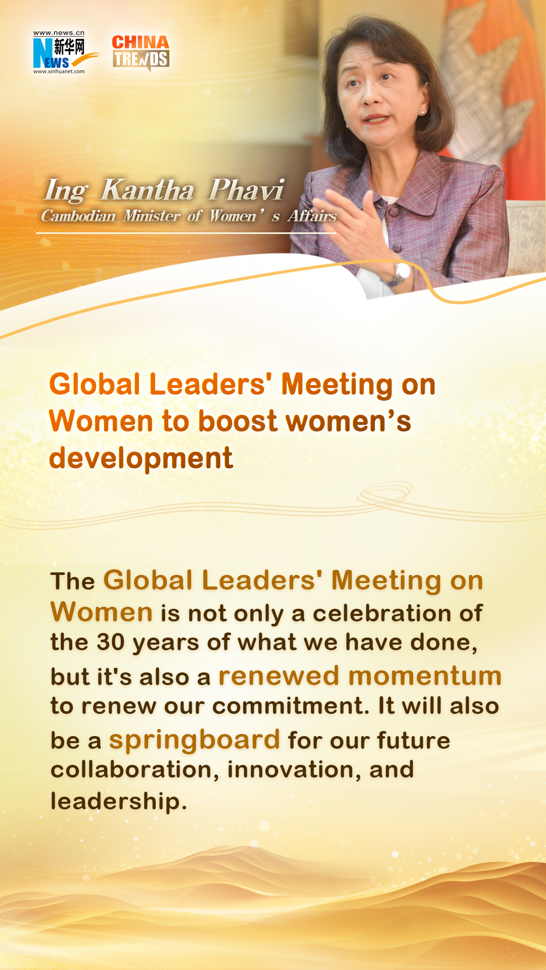 “The Global Leaders' Meeting on Women is not only a celebration of the 30 years of what we have done, but it's also a renewed momentum to renew our commitment,” said Ing Kantha Phavi, Cambodian Minister of Women’s Affairs, in an exclusive interview with Xinhua ahead of the meeting.
