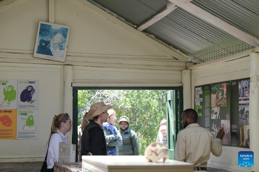 Visitors view exhibits at the display room in the Ol Pejeta Chimpanzee Sanctuary in Laikipia County, Kenya, Oct. 7, 2025. Established in 1993, the 250-acre Ol Pejeta Chimpanzee Sanctuary located in Laikipia County is currently home to 29 chimpanzees. (Xinhua/Yang Guang)