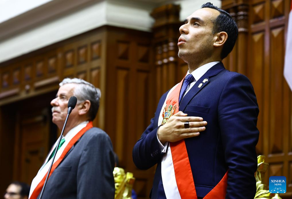 LIMA, Oct. 10 (Xinhua) -- Peruvian Congress leader Jose Jeri was sworn in as the country's president early Friday, shortly after the Congress removed former President Dina Boluarte from office.
