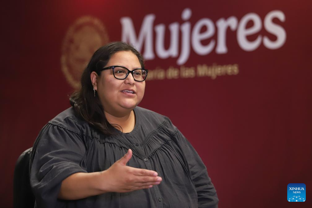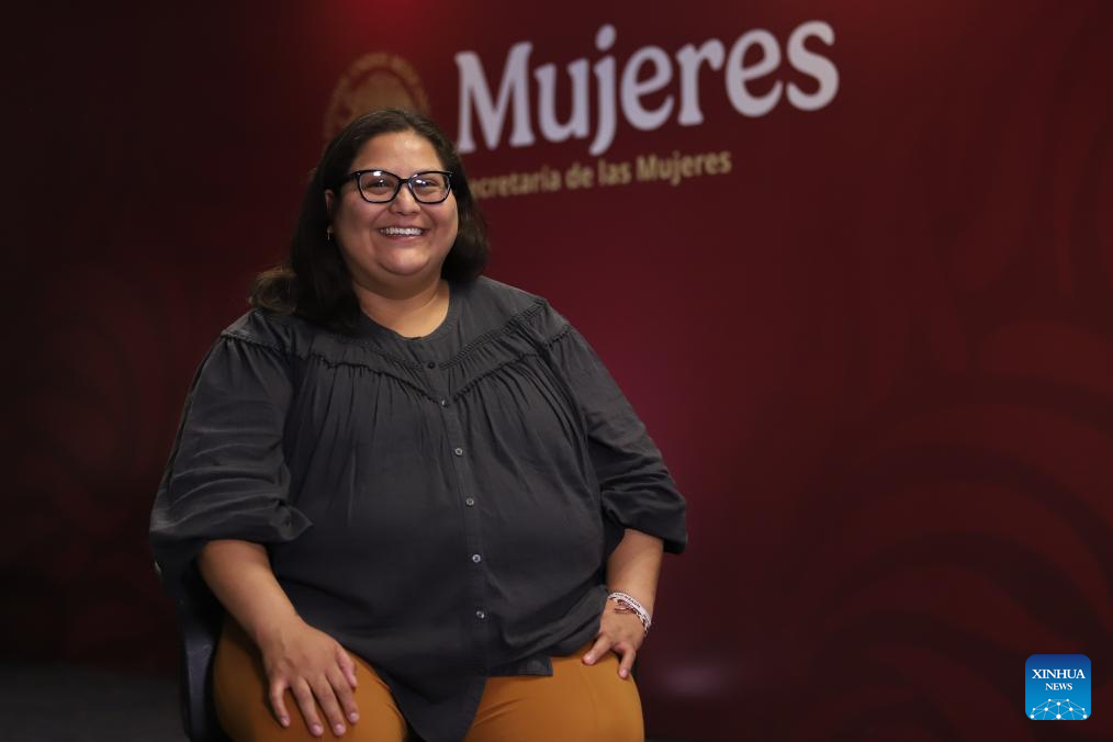 Citlalli Hernandez Mora, Mexico's minister for women, receives an interview with Xinhua in Mexico City, Mexico, Oct. 3, 2025. (Xinhua/Daniel Augusto)