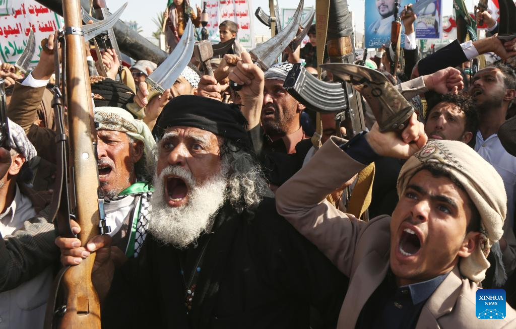 SANAA, Oct. 10 (Xinhua) -- Thousands of supporters of Yemen's Houthi group rallied Friday in the capital, Sanaa, to celebrate a cease-fire between Israel and Hamas, calling it a victory for Palestinians.