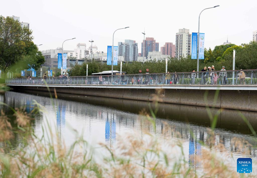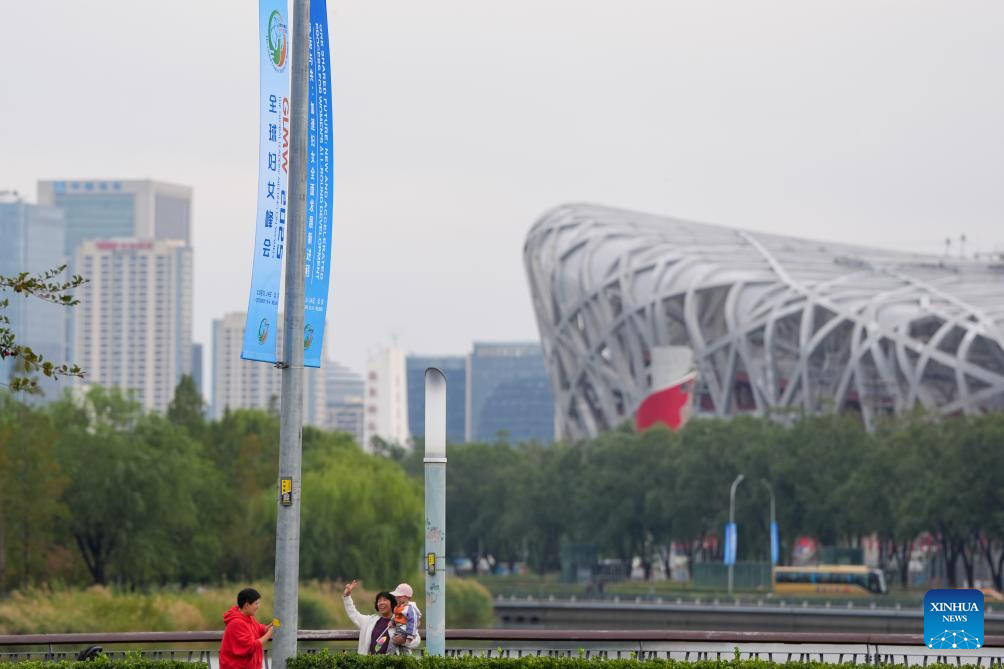 Street banners for the Global Leaders' Meeting on Women are pictured in Beijing, capital of China, on Oct. 12, 2025. The Global Leaders' Meeting on Women will be held in Beijing from Oct. 13 to 14. (Xinhua/Du Zixuan)
