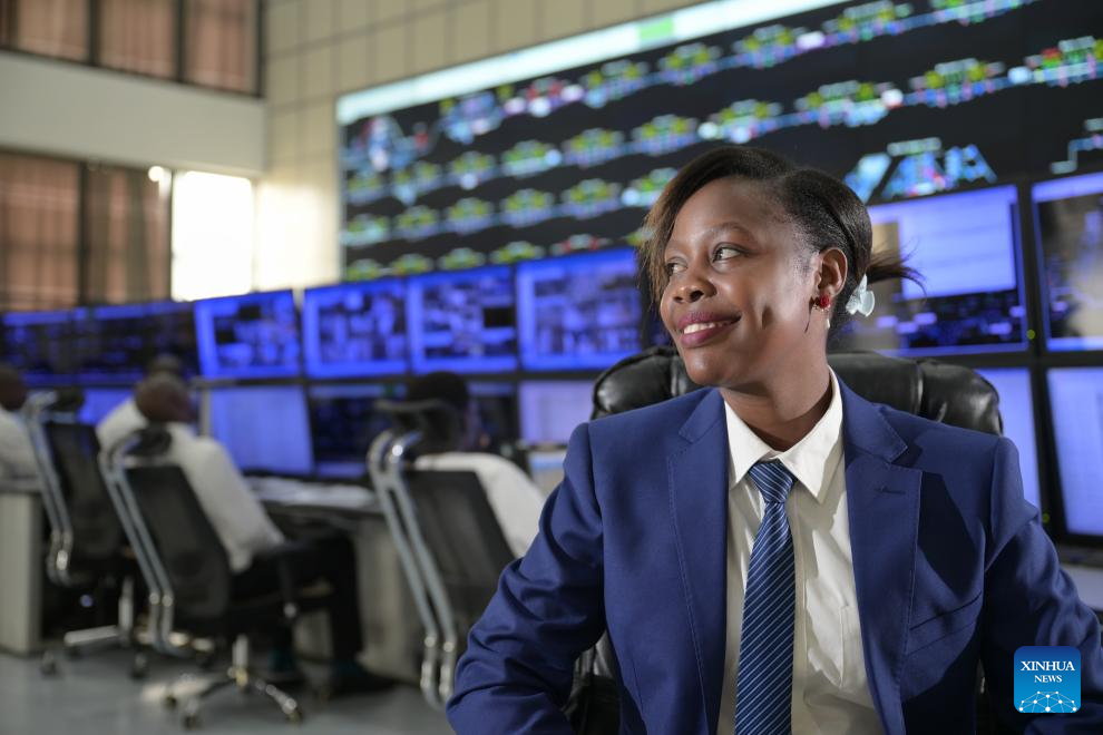 Damaris Mutinda is pictured at the Kenya Railways Dispatch Center of the Mombasa-Nairobi Standard Gauge Railway (SGR) in Nairobi, Kenya, Sept. 30, 2025. (Xinhua/Yang Guang)