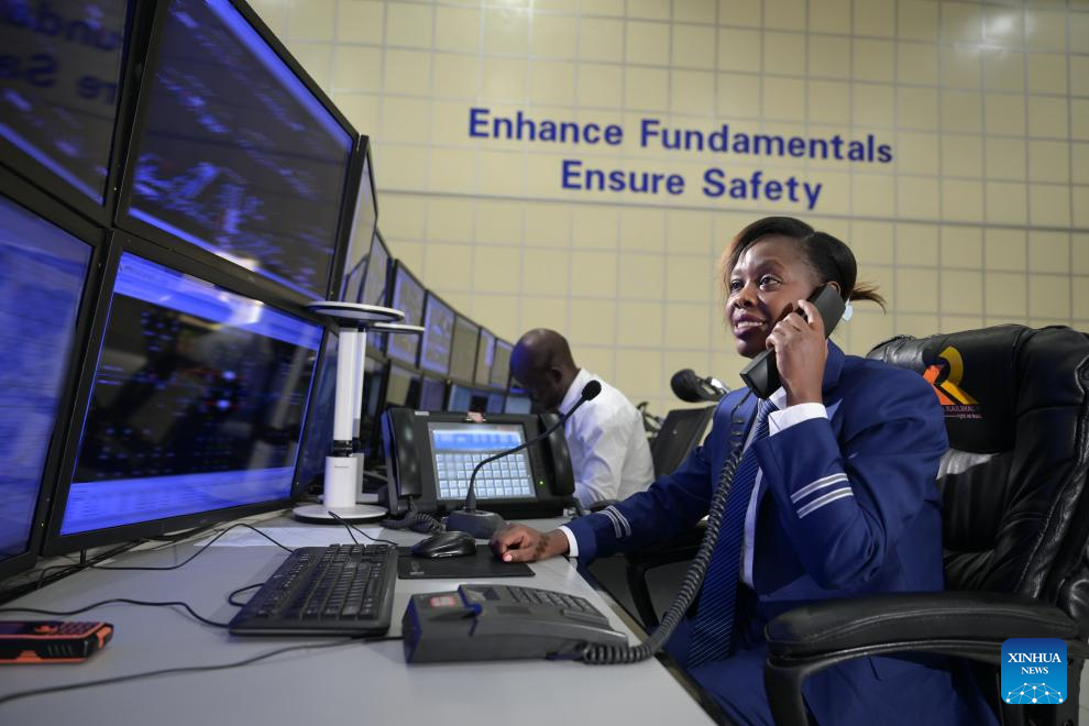 Damaris Mutinda works at the Kenya Railways Dispatch Center of the Mombasa-Nairobi Standard Gauge Railway (SGR) in Nairobi, Kenya, Sept. 30, 2025. (Xinhua/Yang Guang)