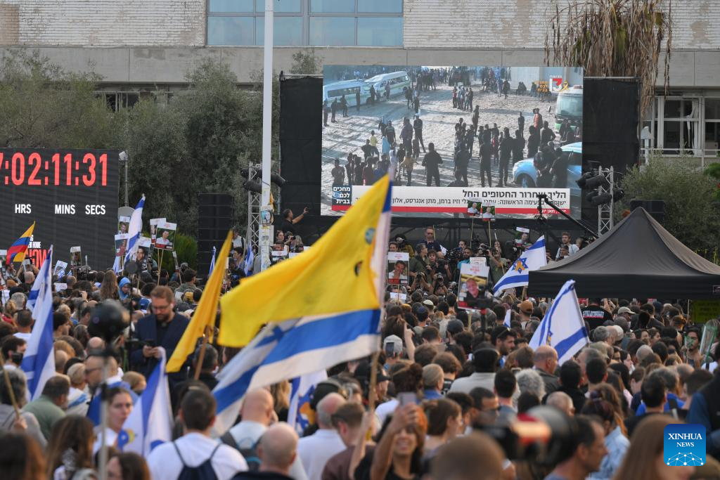 JERUSALEM, Oct. 13 (Xinhua) -- Hamas on Monday morning began releasing the first batch of hostages who had been held in Gaza for more than two years, as part of a major prisoner swap under a newly implemented ceasefire, Israel's state-owned Kan TV reported.