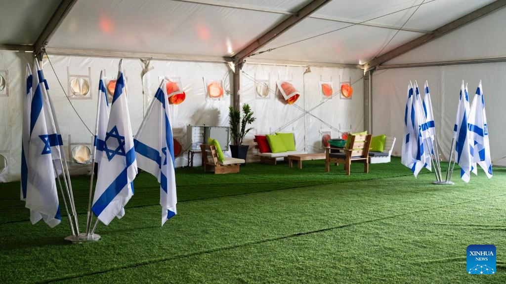 This photo released on Oct. 13, 2025 shows a hostage reception point set up by the Israeli military near the Gaza Border. (IDF/Handout via Xinhua)