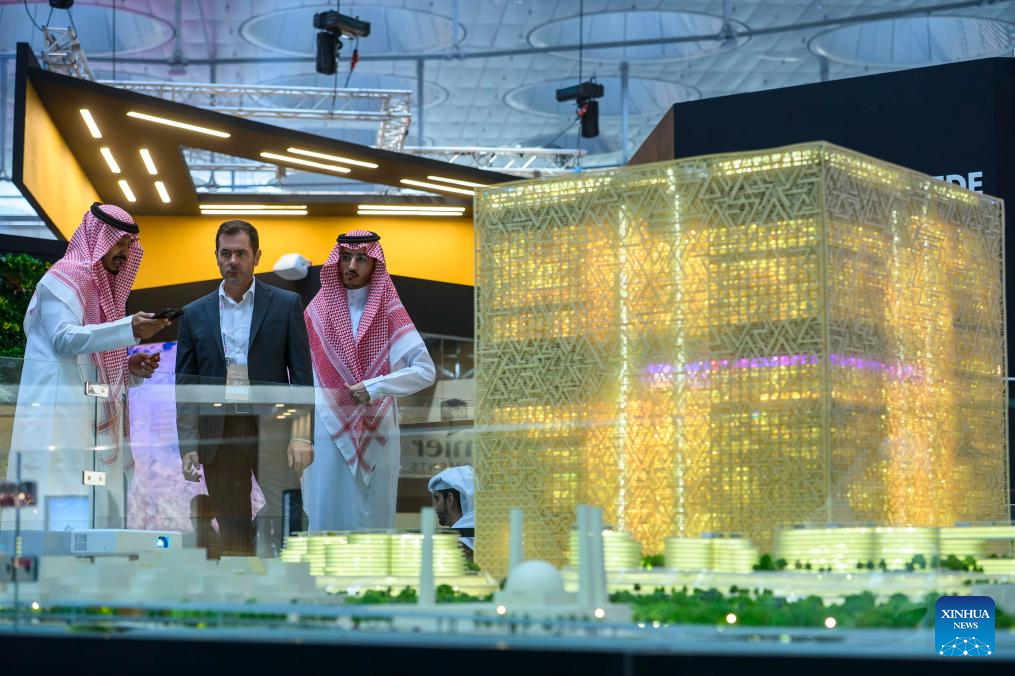 People visit the 13th edition of Cityscape Real Estate Exhibition at Doha Exhibition and Convention Center in Doha, Qatar, Oct. 12, 2025. Running from Oct. 12 to 14, the exhibition showcases groundbreaking projects and offers attendees the chance to engage with top developers. (Photo by Nikku/Xinhua)