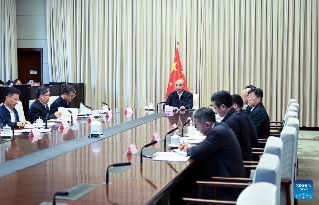 Chinese Vice Premier Liu Guozhong, also a member of the Political Bureau of the Communist Party of China (CPC) Central Committee, addresses a video conference, urging efforts to ensure bumper autumn grain harvest, Oct. 13, 2025. (Xinhua/Zhang Ling)