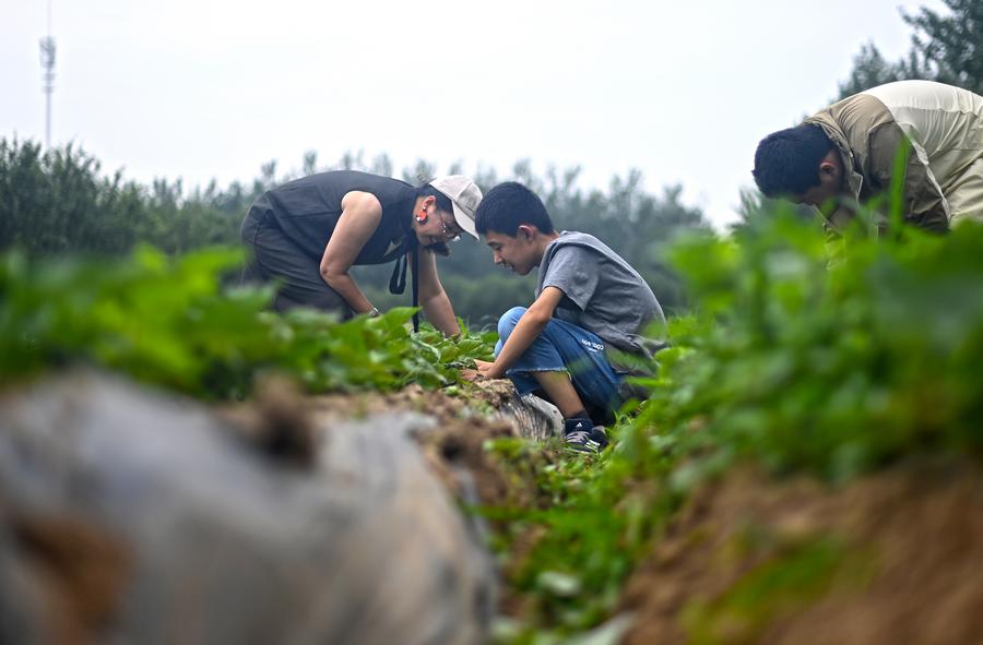 TIANJIN, Oct. 13 (Xinhua) -- On a sunny autumn day, teenagers and their parents were busy harvesting corn and sweet potatoes on a piece of farmland in north China's Tianjin Municipality.