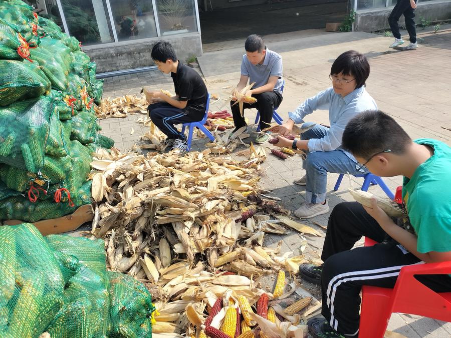 "We ate the corn we grew ourselves. It's very yummy," said Yunyao, a pseudonym, who is a 17-year-old autistic youth, smiling shyly as he shucked corn.