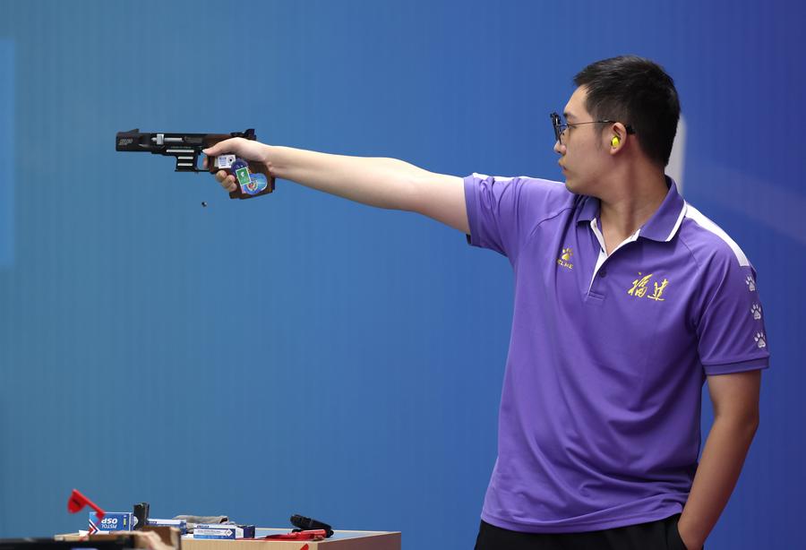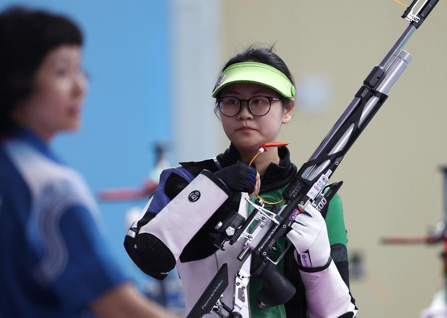 GUANGZHOU, Oct. 13 (Xinhua) -- Han Jiayu of Zhejiang captured the gold medal with a thrilling comeback in the women's 10m air rifle final at China's 15th National Games on Monday, edging out Jiangsu's Yan Jinjing with a decisive final shot.