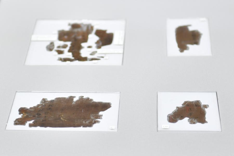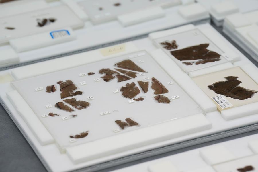This photo taken on Oct. 13, 2025 shows part of the Zidanku Silk Manuscripts on display at the Hunan Museum in Changsha, capital of central China's Hunan Province. (Xinhua/Chen Zhenhai)