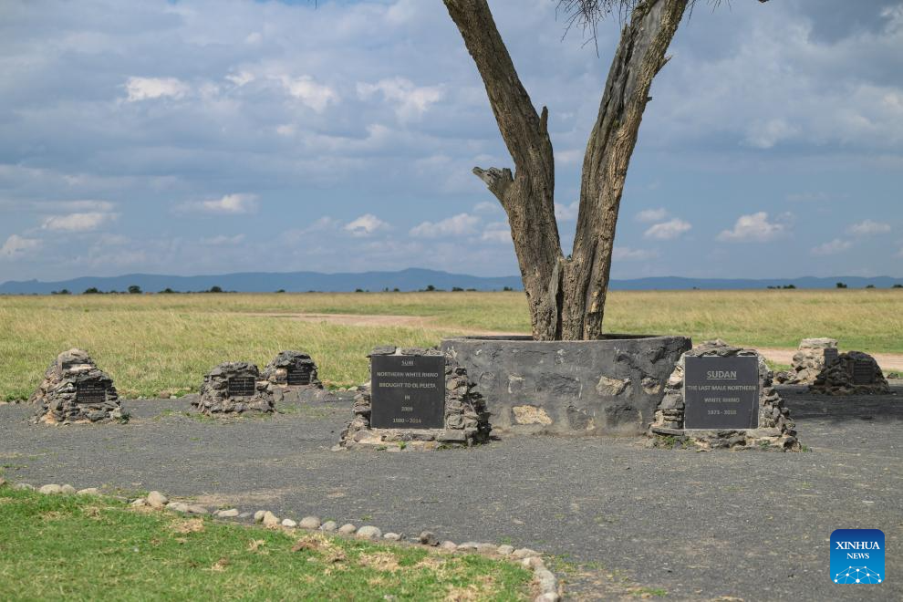 This photo taken on Oct. 7, 2025 shows the monuments erected for the deceased northern white rhinos at the Ol Pejeta Conservancy in Laikipia County, Kenya. "Najin" and "Fatu" are the last two living northern white rhinos on earth. They are now housed at Ol Pejeta Conservancy in Laikipia County, Kenya. (Xinhua/Yang Guang)
