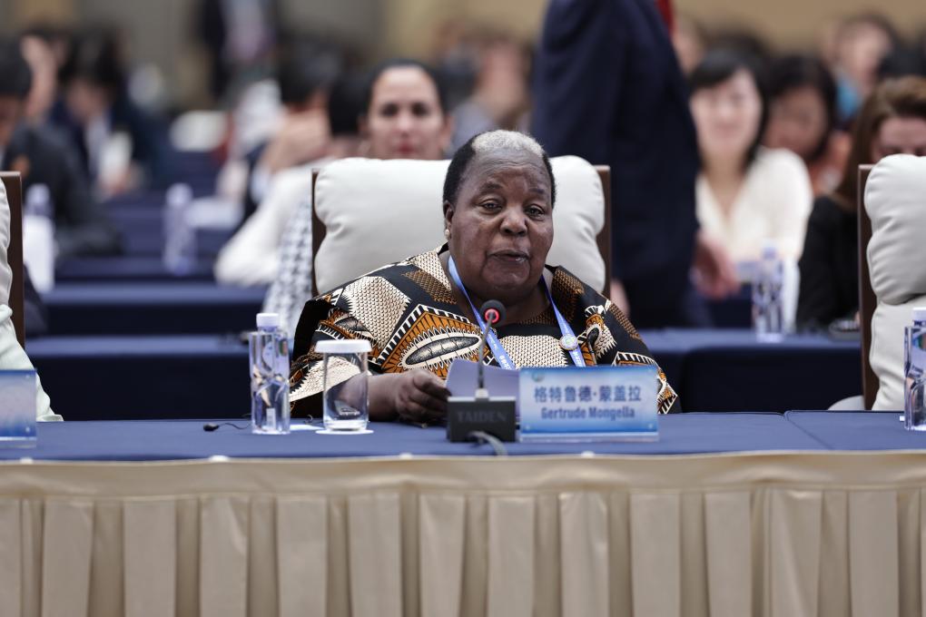 Gertrude Mongella, secretary-general of the Fourth World Conference on Women held in the Chinese capital Beijing in 1995, delivers a speech during the plenary meeting of the Global Leaders' Meeting on Women in Beijing, capital of China, Oct. 13, 2025. (Xinhua/Zhang Yuewei)