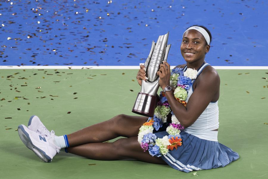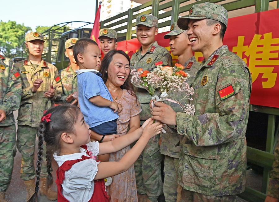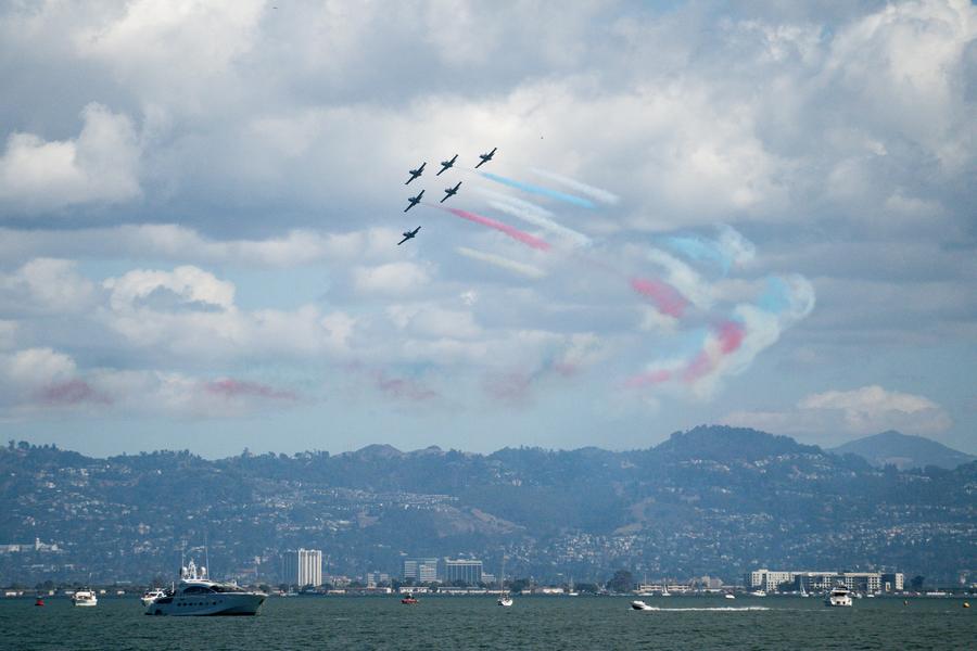 Street banners for the Global Leaders' Meeting on Women are pictured in Beijing, capital of China, Oct. 12, 2025. The Global Leaders' Meeting on Women will be held in Beijing from Oct. 13 to 14. (Xinhua/Xue Yuge)A girl presents a bouquet to a militiaman involved in flood control and rescue operations in Nanning, south China's Guangxi Zhuang Autonomous Region, Oct. 12, 2025. (Xinhua/Zhou Hua)This photo taken on Oct. 12, 2025 shows the Huajiang Grand Canyon Bridge under the starry sky in southwest China's Guizhou Province. The Huajiang Grand Canyon Bridge, soaring 625 meters above the Beipan River in Guizhou's mountainous terrain, is the world's tallest bridge. (Xinhua/Yang Wenbin)An aerial drone photo taken on Oct. 11, 2025 shows a view of the tidal flat after the tidal bore of Qiantang River receded in Haining City, east China's Zhejiang Province. The Qiantang River tidal bore, famous for its height and speed, is a traditional tourist attraction in Zhejiang Province. Every year, soaring waves crash along the banks of the river, near the city of Haining. After the ebb of the tide, different tree-shaped patterns appear on the tidal flat. (Xinhua/Xu Yu)Tourists enjoy the autumn scenery in the Changchun Botanical Garden in Changchun, northeast China's Jilin Province, Oct. 12, 2025. (Xinhua/Xu Chang)Coco Gauff poses with the trophy during the awarding ceremony after the women's singles final between Jessica Pegula of the United States and Coco Gauff of the United States at the 2025 Wuhan Open tennis tournament in Wuhan, central China's Hubei Province, Oct. 12, 2025. (Xinhua/Wu Zhizun)Members of the Patriots Jet Team perform during the annual Fleet Week air show in San Francisco, California, the United States, Oct. 11, 2025. (Photo by Ziyu Julian Zhu/Xinhua)A staff member interacts with the female northern white rhino "Fatu" at the Ol Pejeta Conservancy in Laikipia County, Kenya, Oct. 7, 2025. "Najin" and "Fatu" are the last two living northern white rhinos on earth. They are now housed at Ol Pejeta Conservancy in Laikipia County, Kenya. (Xinhua/Yang Guang)Palestinians carrying their belongings return to the north along the Salah al-Din Road in central Gaza Strip, Oct. 11, 2025. Displaced Palestinians have begun returning from the southern part of the Gaza Strip to the north after the Israeli army announced that civilians are permitted to move through the coastal Rashid Road and Salah al-Din Road, local sources said on Friday. (Photo by Rizek Abdeljawad/Xinhua)■