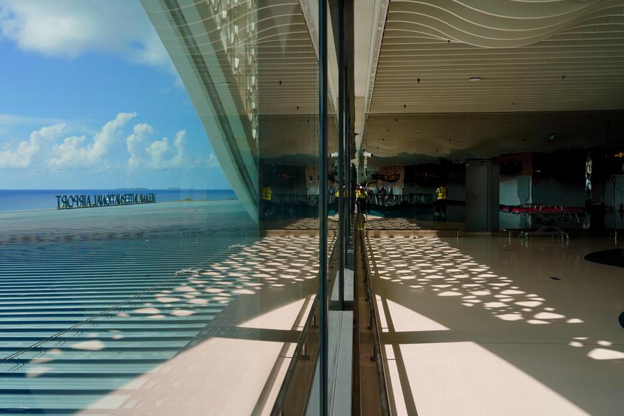 MALE, Oct. 13 (Xinhua) -- From above, the new terminal building of Velana International Airport gleams like a flowing ribbon along the turquoise waters of the Indian Ocean. Its wave-like facade and smooth, sand-colored tones echo the beaches and sea breeze of the Maldives, blending seamlessly with the island landscape.