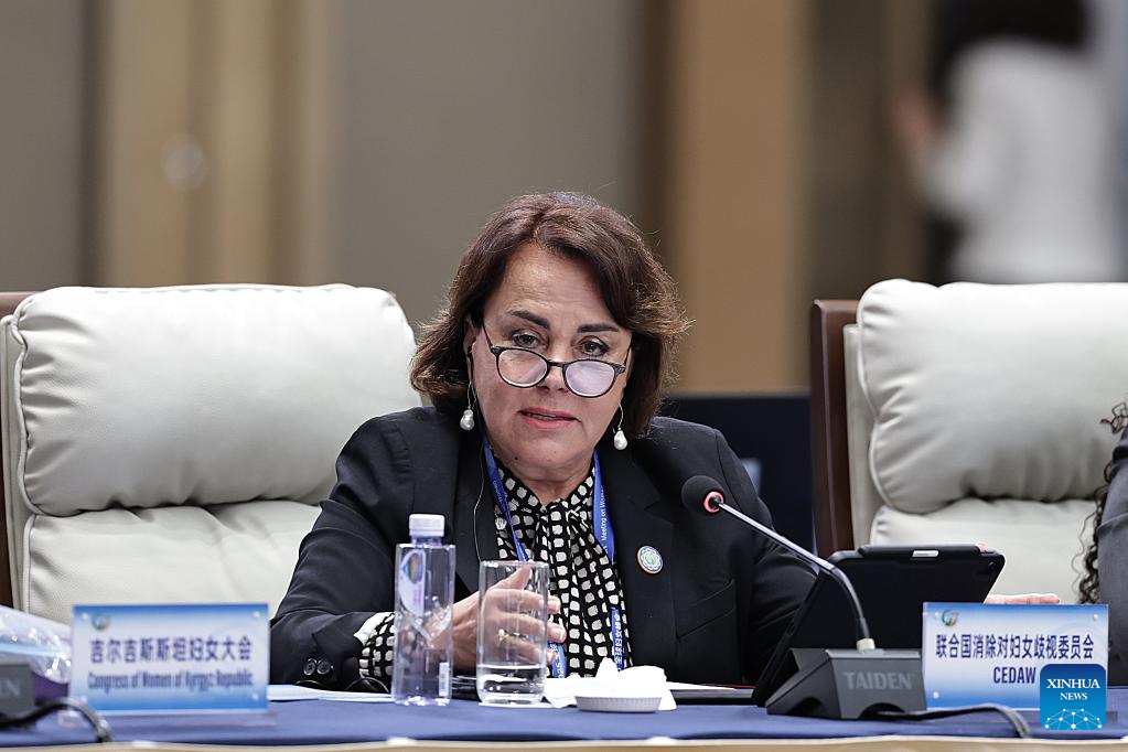 A representative from the UN Committee on the Elimination of Discrimination against Women (CEDAW) attends the plenary meeting of the Global Leaders' Meeting on Women in Beijing, capital of China, Oct. 13, 2025. (Xinhua/Zhang Yuwei)