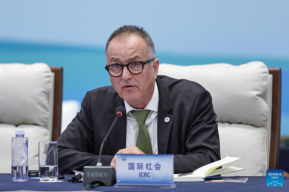 A representative from the International Committee of the Red Cross (ICRC) attends the plenary meeting of the Global Leaders' Meeting on Women in Beijing, capital of China, Oct. 13, 2025. (Xinhua/Zhang Yuwei)