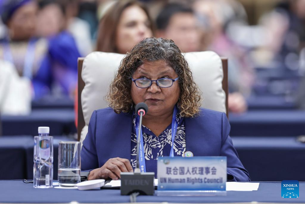 A representative from the UN Human Rights Council attends the plenary meeting of the Global Leaders' Meeting on Women in Beijing, capital of China, Oct. 13, 2025. (Xinhua/Zhang Yuwei)