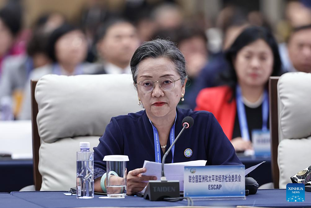 A representative from the United Nations Economic and Social Commission for Asia and the Pacific (ESCAP) attends the plenary meeting of the Global Leaders' Meeting on Women in Beijing, capital of China, Oct. 13, 2025. (Xinhua/Zhang Yuwei)