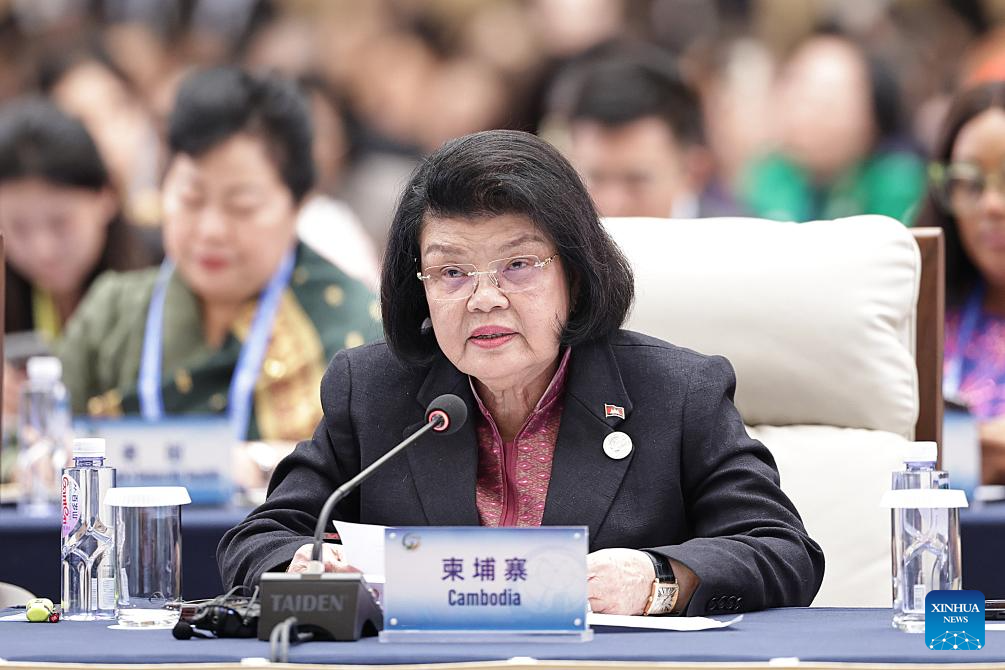 A representative from Cambodia attends the plenary meeting of the Global Leaders' Meeting on Women in Beijing, capital of China, Oct. 13, 2025. (Xinhua/Zhang Yuwei)