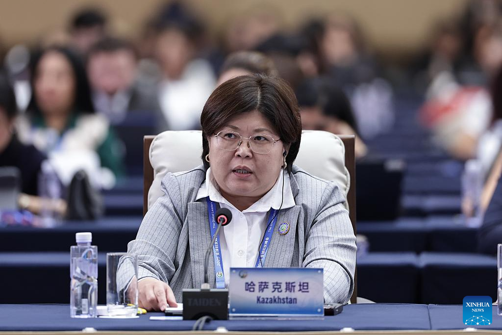 A representative from Kazakhstan attends the plenary meeting of the Global Leaders' Meeting on Women in Beijing, capital of China, Oct. 13, 2025. (Xinhua/Zhang Yuwei)