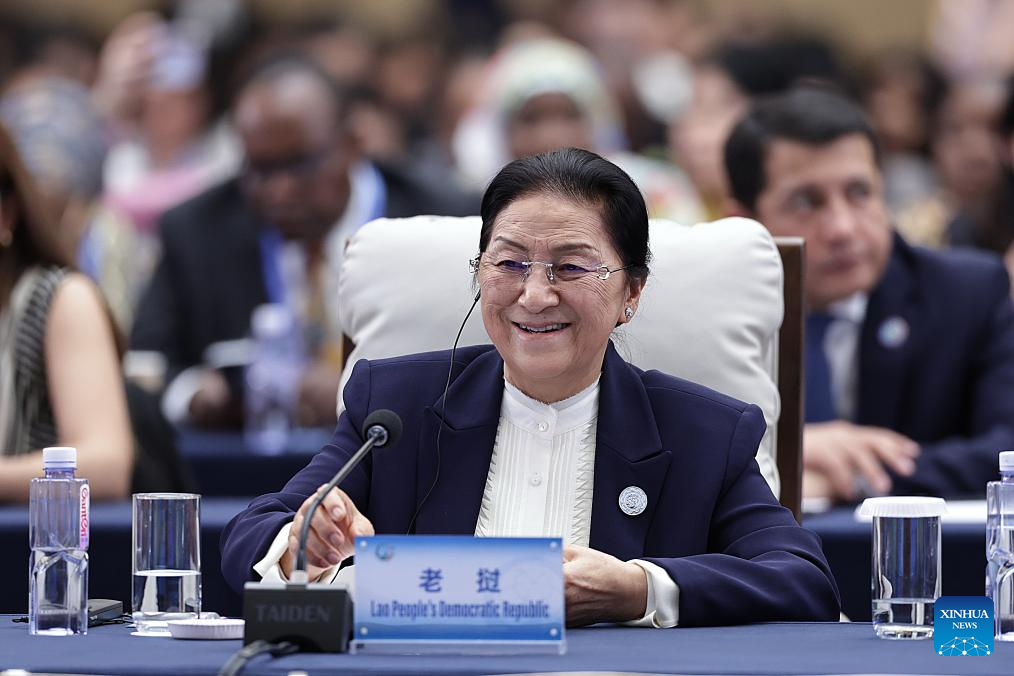 A representative from Laos attends the plenary meeting of the Global Leaders' Meeting on Women in Beijing, capital of China, Oct. 13, 2025. (Xinhua/Zhang Yuwei)