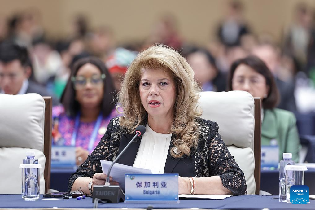 A representative from Bulgaria attends the plenary meeting of the Global Leaders' Meeting on Women in Beijing, capital of China, Oct. 13, 2025. (Xinhua/Zhang Yuwei)