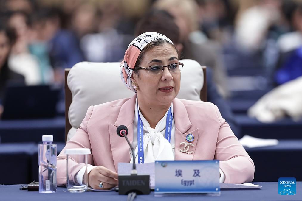 A representative from Egypt attends the plenary meeting of the Global Leaders' Meeting on Women in Beijing, capital of China, Oct. 13, 2025. (Xinhua/Zhang Yuwei)