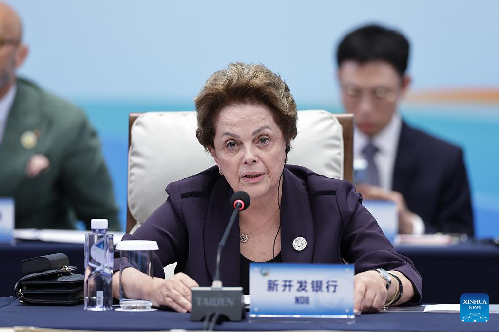 A representative from the New Development Bank (NDB) attends the plenary meeting of the Global Leaders' Meeting on Women in Beijing, capital of China, Oct. 13, 2025. (Xinhua/Zhang Yuwei)