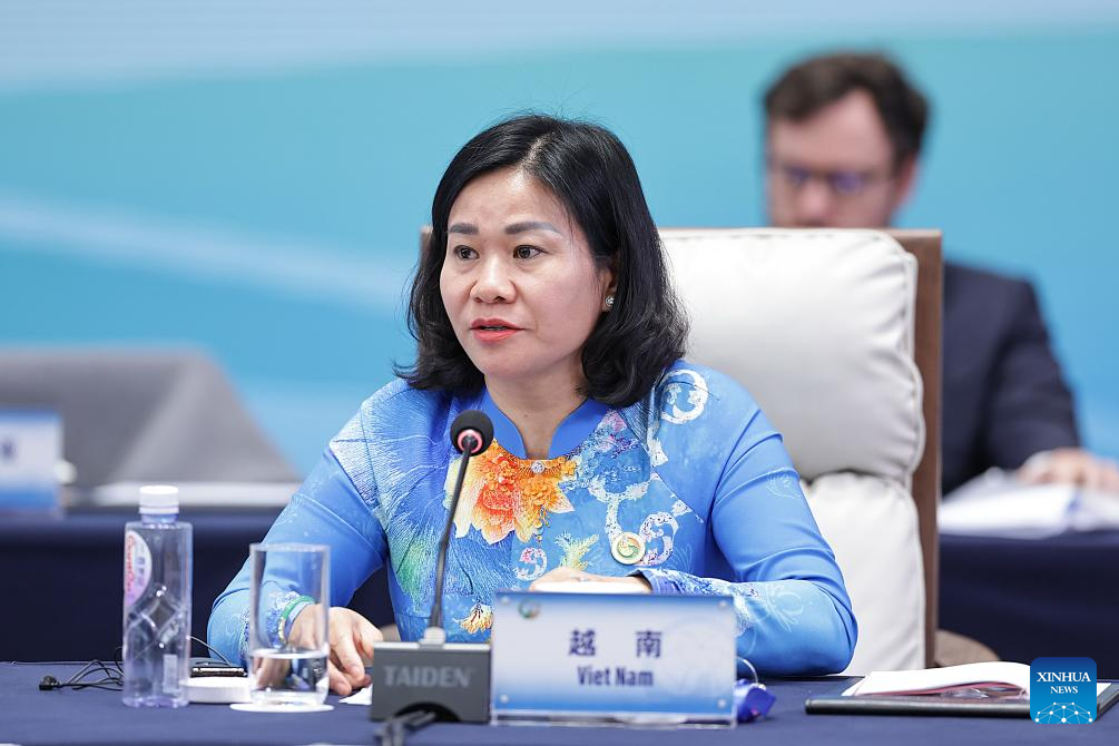 A representative from Vietnam attends the plenary meeting of the Global Leaders' Meeting on Women in Beijing, capital of China, Oct. 13, 2025. (Xinhua/Zhang Yuwei)