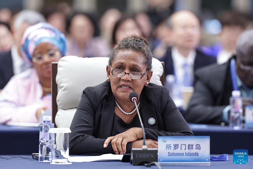 A representative from the Solomon Islands attends the plenary meeting of the Global Leaders' Meeting on Women in Beijing, capital of China, Oct. 13, 2025. (Xinhua/Zhang Yuwei)