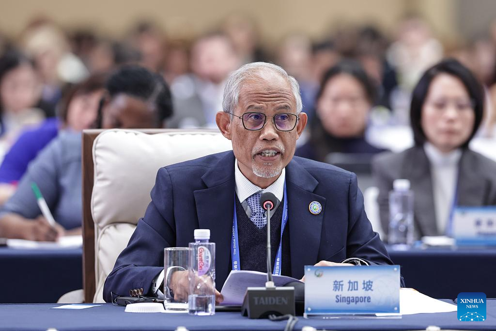 A representative from Singapore attends the plenary meeting of the Global Leaders' Meeting on Women in Beijing, capital of China, Oct. 13, 2025. (Xinhua/Zhang Yuwei)