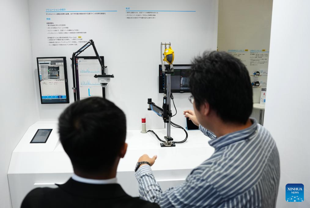 People communicate at the Combined Exhibition of Advanced Technologies (CEATEC) 2025 in Chiba Prefecture, Japan, on Oct. 14, 2025. The CEATEC 2025 kicked off here on Tuesday. (Xinhua/Jia Haocheng)