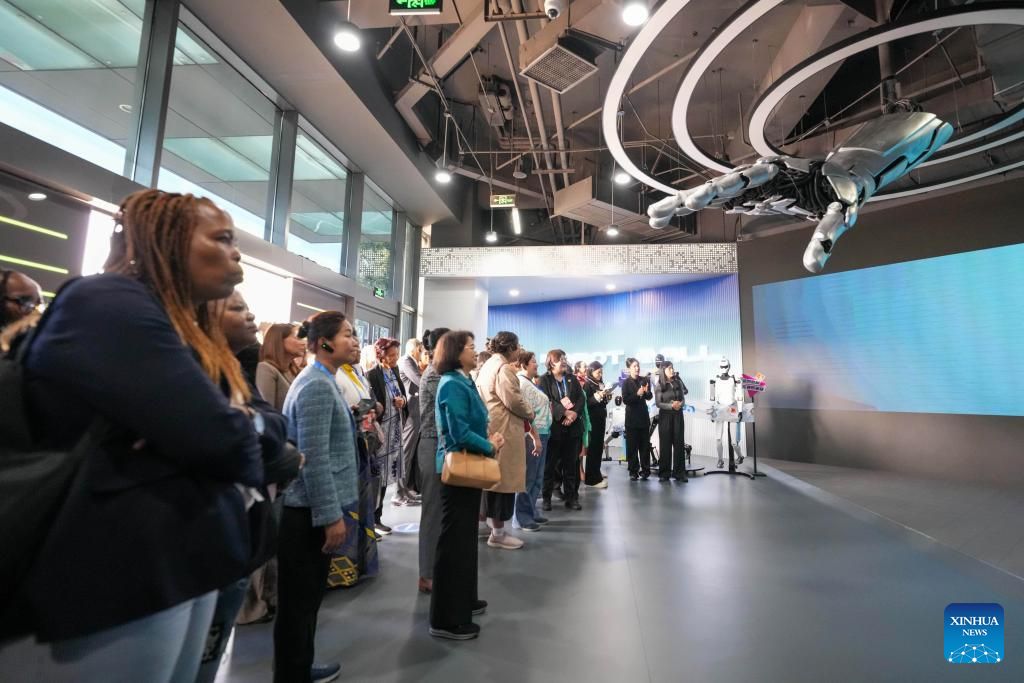 Representatives, who are in Beijing for the Global Leaders' Meeting on Women, visit the Beijing World of Robots in Beijing, capital of China, Oct. 14, 2025. (Xinhua/Du Zixuan)