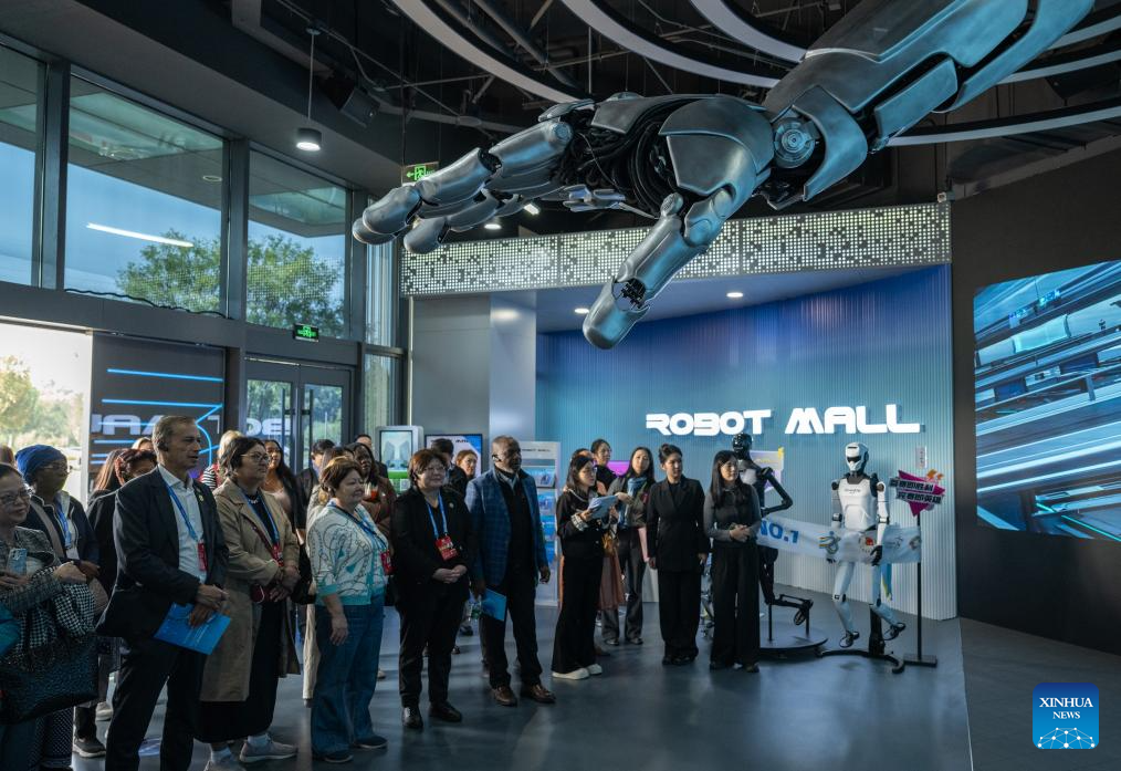 Representatives, who are in Beijing for the Global Leaders' Meeting on Women, visit the Beijing World of Robots in Beijing, capital of China, Oct. 14, 2025. (Xinhua/Xue Yuge)