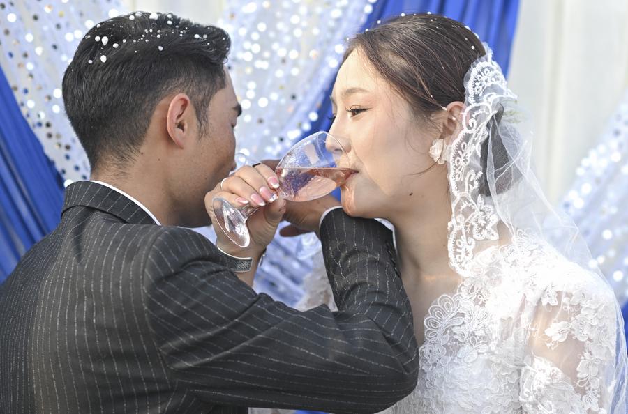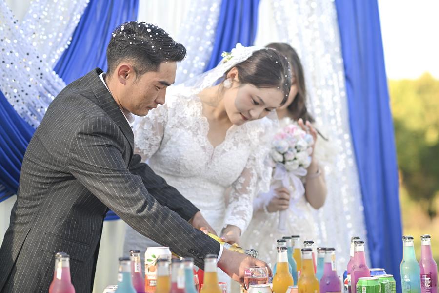 Traditional ceremony and modern festivities at sweet wedding in Xinjiang-Xinhua