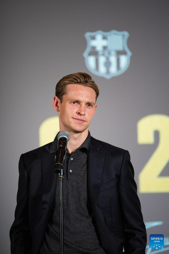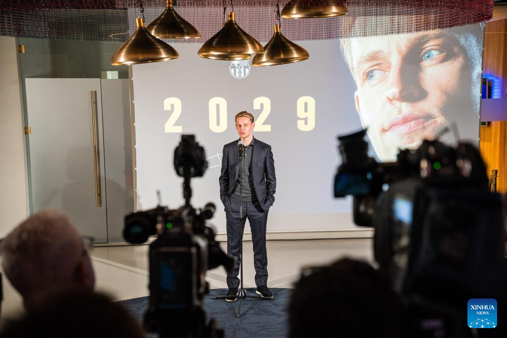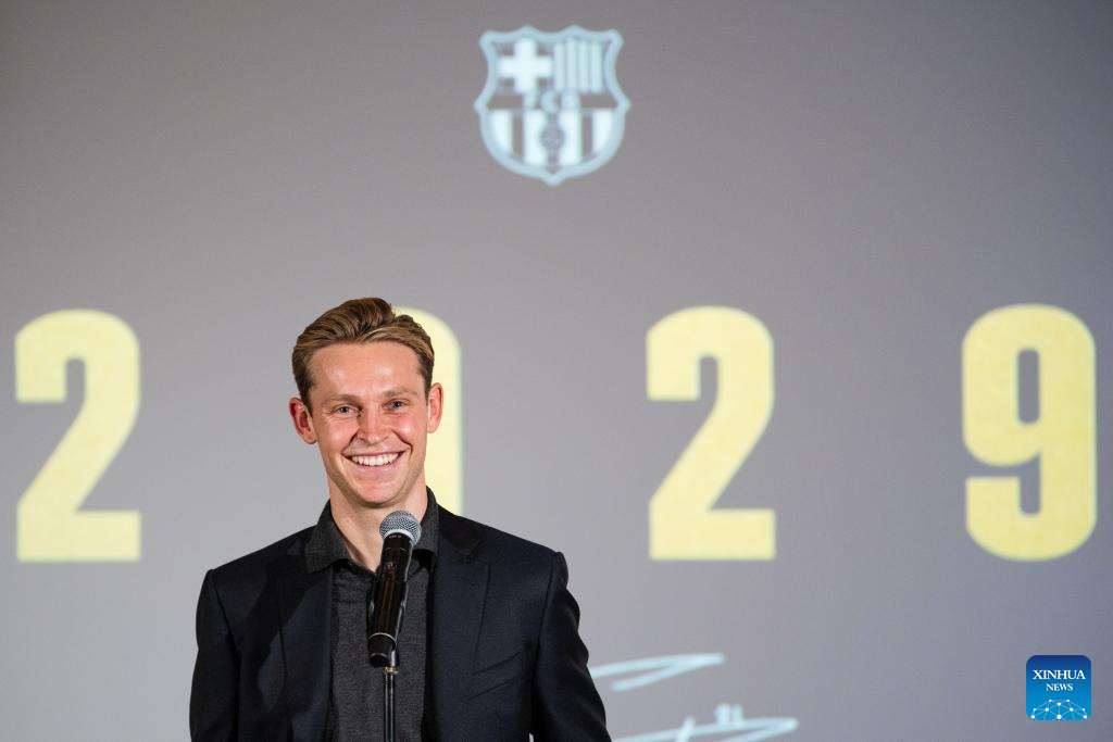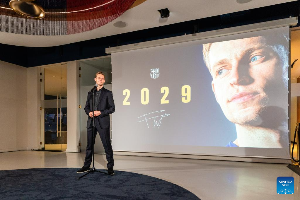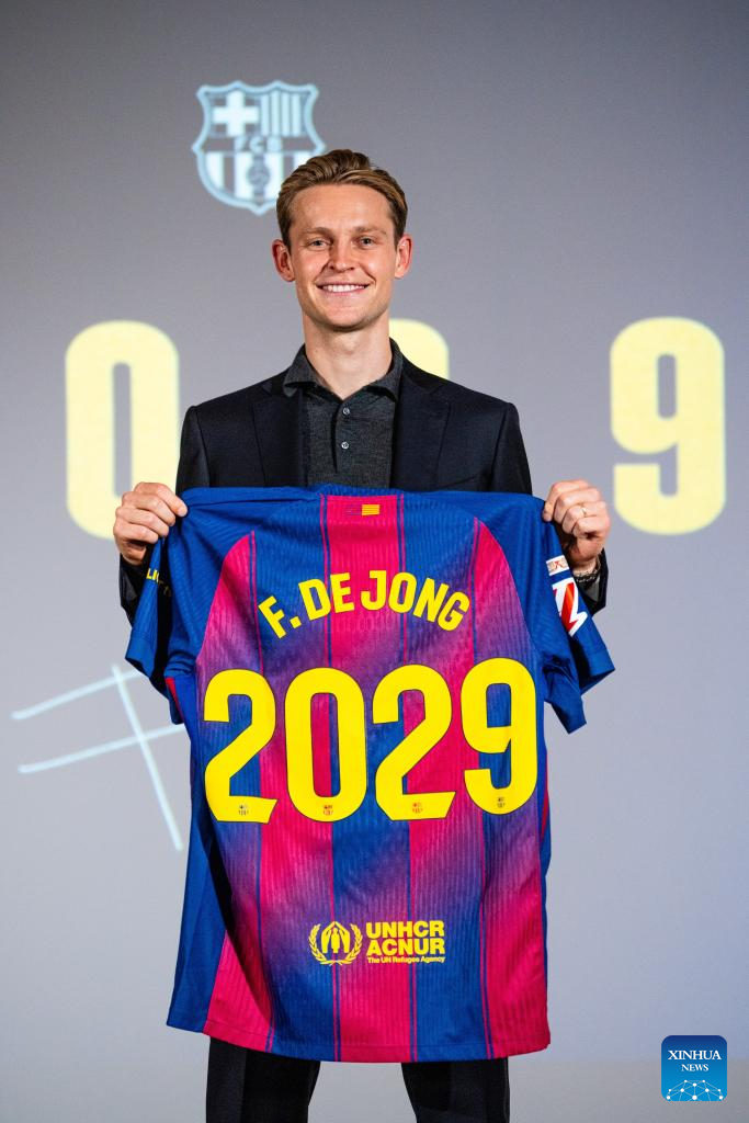 MADRID, Oct. 15 (Xinhua) -- FC Barcelona announced on Wednesday that Dutch international midfielder Frenkie de Jong has signed a new contract keeping him at the club until June 2029.