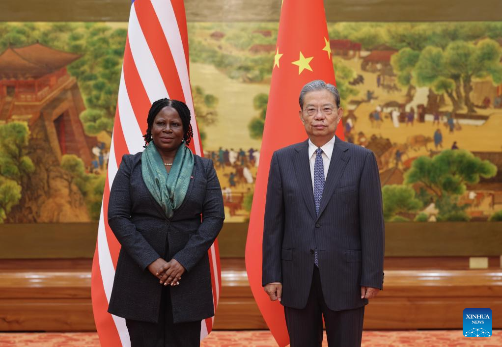BEIJING, Oct. 15 (Xinhua) -- China's top legislator Zhao Leji on Wednesday met with Liberian Senate President Pro Tempore Nyonblee Karnga-Lawrence, who is in Beijing for the Global Leaders' Meeting on Women.