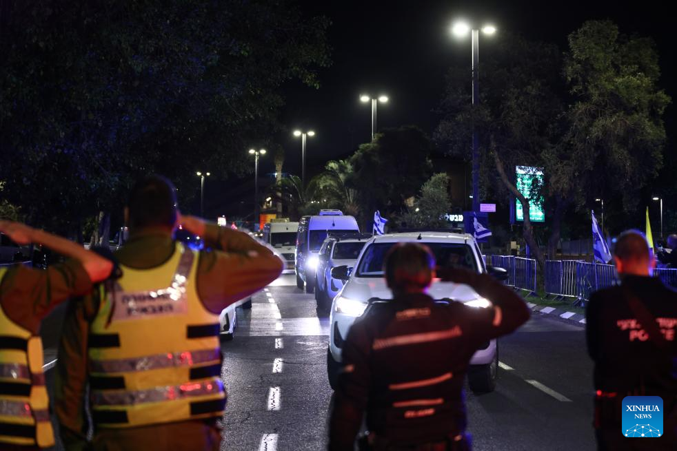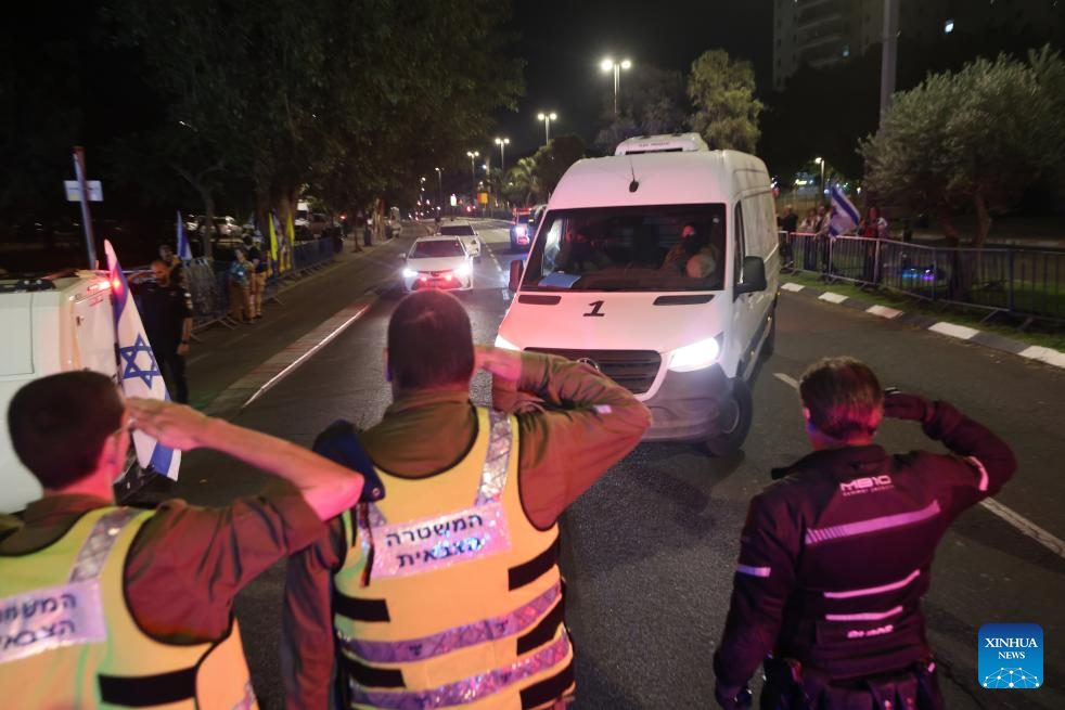 JERUSALEM, Oct. 14 (Xinhua) -- Israel received the bodies of four hostages on Tuesday night after they were handed over to the Red Cross by Hamas in Gaza.