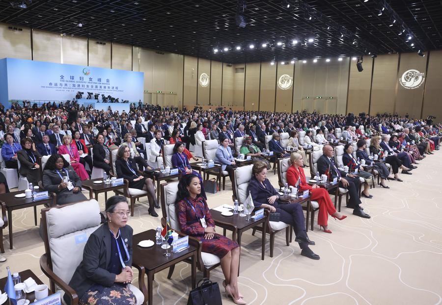 BEIJING, Oct. 15 (Xinhua) -- Chinese President Xi Jinping shared on Monday with the international community his insight on accelerating women's all-round development and promoting gender equality worldwide at the opening ceremony of the Global Leaders' Meeting on Women in Beijing.