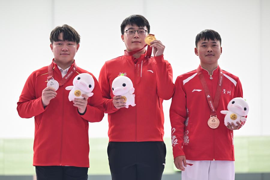 In the men's 10m air rifle team final, Shaanxi, led by Olympic champion Liu Yukun, maintained a mid-match advantage to defeat Zhejiang 17-9. Liaoning claimed bronze with a 17-7 win over Shandong.